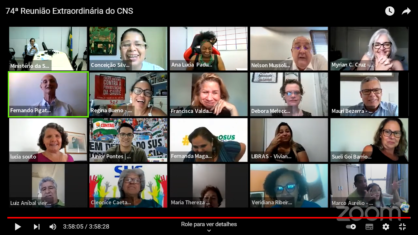 O conselheiro nacional de Saúde Neilton Araújo, representante do Ministério da Saúde, participou representando o secretário executivo do Ministério da Saúde Rodrigo Cruz, que precisou se ausentar da reunião por ter sido chamado pelo ministro Marcelo Queiroga, segundo Neilton. “A gente continua articulando em relação ao Ministério da Saúde. Dentro das próximas uma ou duas semanas, teremos uma posição oficial sobre a participação da gestão na comissão organizadora e demais comissões da 5ª CNSM”, disse.