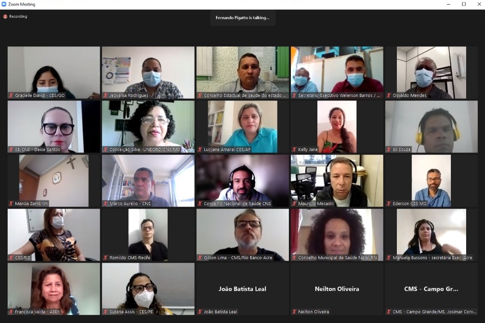 Os representantes dos conselhos estaduais e municipais de Saúde apresentaram um rápido panorama de como está o enfrentamento à pandemia em suas localidades. Eles também deram informações sobre a organização de atividades preparatórias para a 5ª Conferência Nacional de Saúde Mental (CNSM), que será realizada entre 8 e 11 de novembro deste ano.