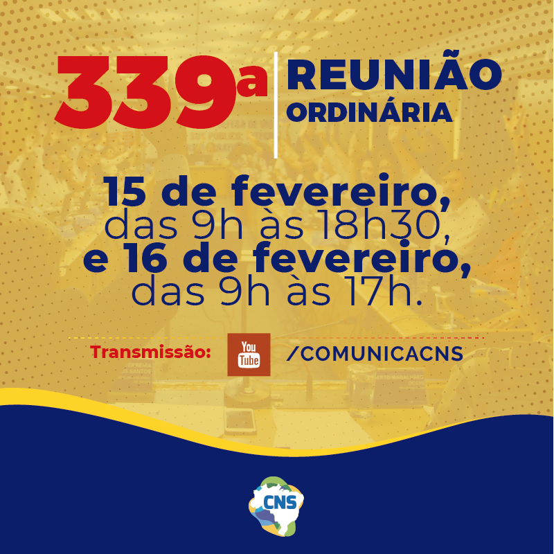 A 339ª RO será realizada nos dias 15 e 16 de fevereiro, a partir das 9h. O encontro ocorre no Plenário do CNS e será transmitido ao vivo pelo Youtube e Facebook do CNS.
