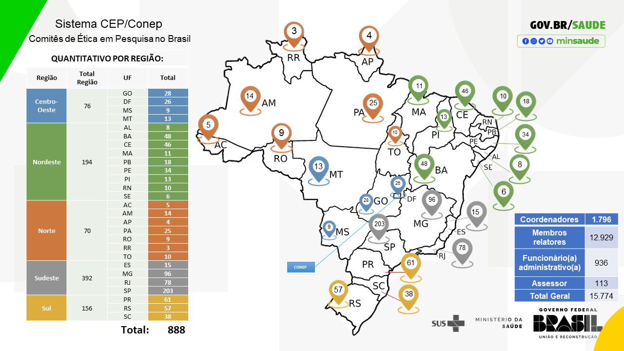 Capilarizado, o sistema Cep/Conep foi instituído em 1996 por meio da Resolução nº 196/96 do CNS e reúne atualmente cerca de 15 mil pessoas em seus processos de trabalho. São 888 comitês registrados nas cinco regiões brasileiras. “A Conep dá consistência na análise da ética em pesquisa no país. Essa organização confere também a cultura de que este é um bom lugar para se desenvolver pesquisa, especificamente para o participante de pesquisa, que estará seguro ao participar de um projeto”, reforça Laís Bonilha, coordenadora da Conep.