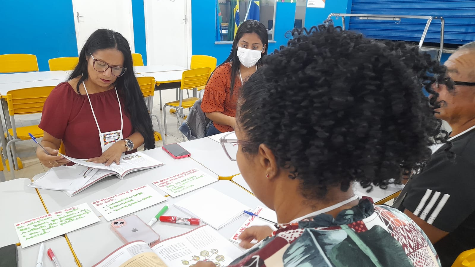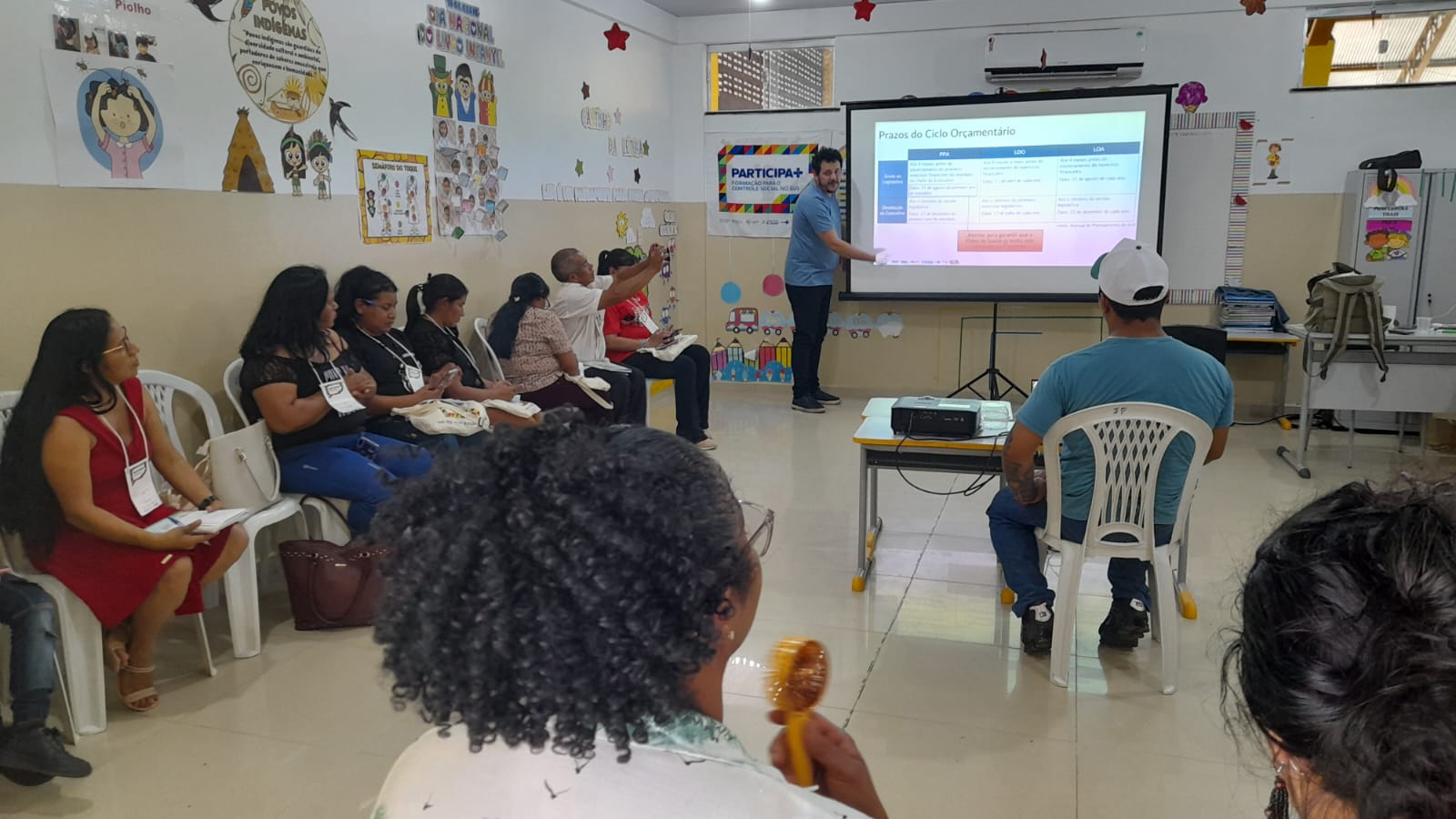 Com esse propósito, a sala de aula da Escola Municipal de Educação Infantil Professor Raimundo Nonato Leda dos Santos, em Pacaraima, recebeu, nos dias 11 e 12 de julho, gestores, trabalhadores, usuários do SUS e conselheiros de saúde. Durante os dois dias de trabalho, os participantes aprofundaram seus conhecimentos sobre os conceitos de saúde, princípios e organização do SUS, financiamento de saúde, ciclo orçamentário e instrumentos de planejamento do SUS.