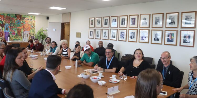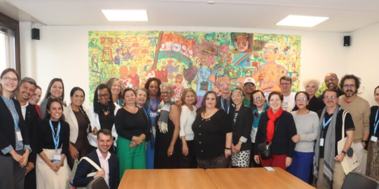 O encontro ocorreu na Missão Permanente do Brasil junto à ONU e demais Organismos Internacionais em Genebra, nesta quinta (30/05), um dia após a aprovação da resolução sobre Participação Social em Saúde, na 77ª Assembleia Mundial da Saúde, que acontece na cidade suíça até sábado, 1º de junho.