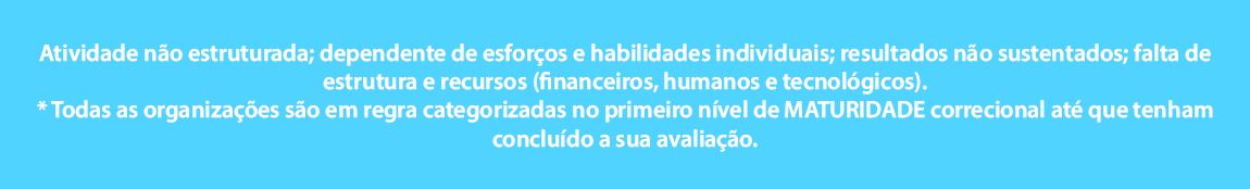Finda a etapa de realização da Autoavaliação da Maturidade Correcional, faz-se necessário prosseguir nas etapas seguintes de trabalho com vista ao alcance do Nível de Maturidade Correcional estabelecido como adequado à Organização.