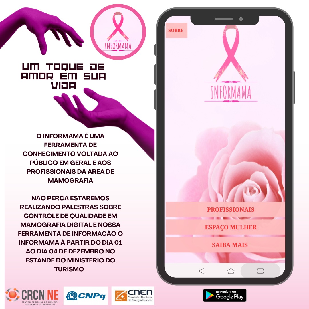De hoje (01/12) até o próximo domingo (04/12), sempre às 10h30 e 15h30, o CRCN-NE/CNEN apresentará palestras sobre “Controle de Qualidade em Mamografia Digital e o InforMama”. A apresentação será feita por Ricardo Silvério, no estande do Ministério do Turismo, na programação da 19ª edição da Semana Nacional de Ciência e Tecnologia. O evento está sendo realizado no Parque da Cidade, em Brasília.