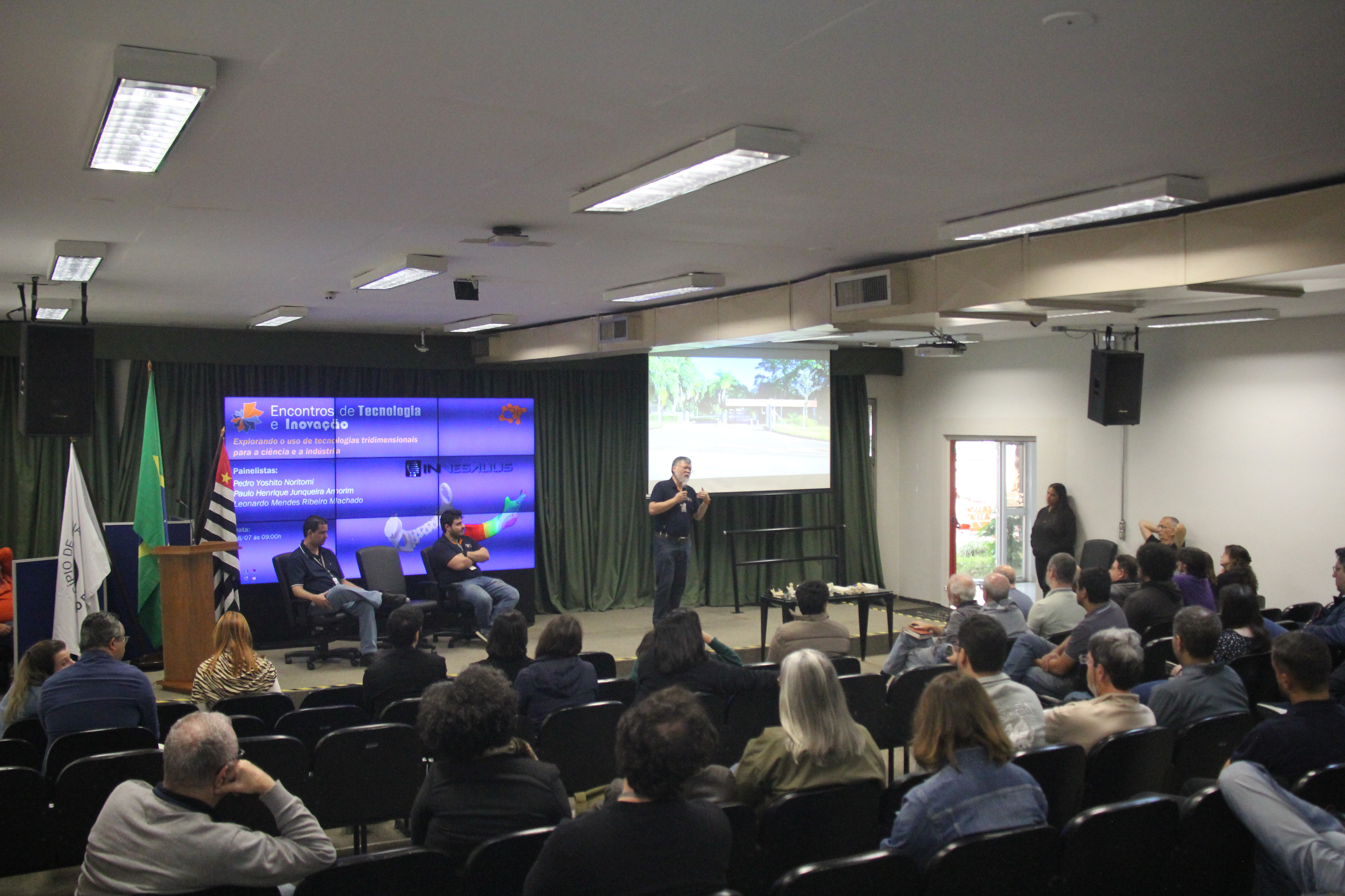 Com o tema “Explorando Tecnologias Tridimensionais para a Ciência e a Indústria”, o encontro reuniu três palestrantes da Divisão de Tecnologias para Produção e Saúde (DITPS): Pedro Noritomi, Paulo Henrique Junqueira Amorim e Leonardo Mendes Ribeiro Machado.