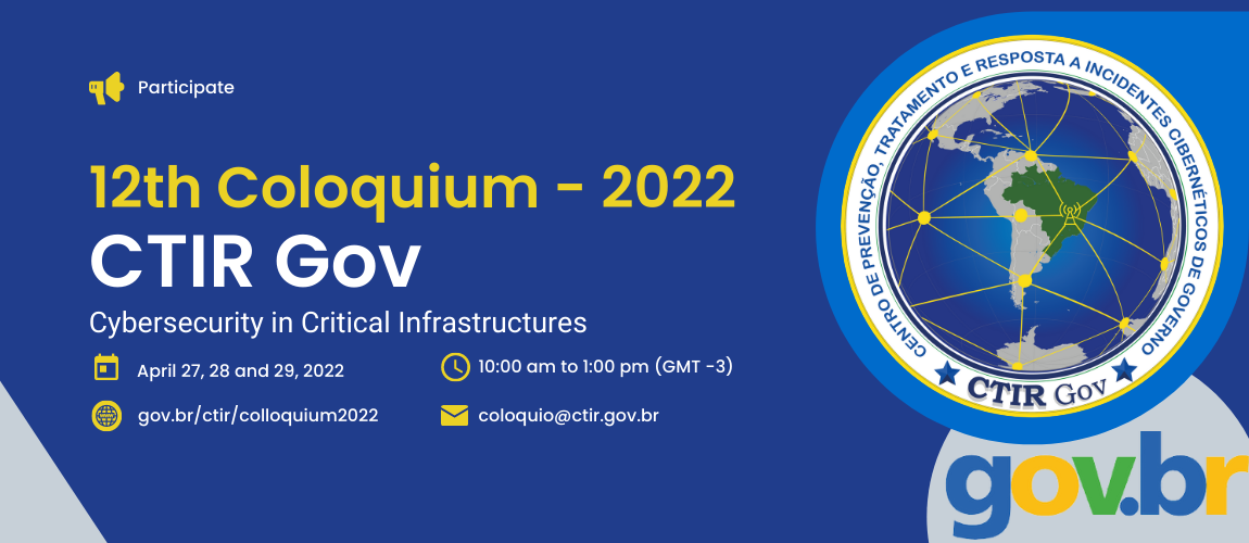 The CTIR Gov 2022 Colloquium, in its 12th edition, has as its theme: "Cybernetic Security in Critical Infrastructures", and will bring together, in a virtual way, cyber and information security managers and technicians from Federal Public Administration bodies, in addition to representatives in the area of the various sectors linked to critical infrastructure in Brazil and in the world.