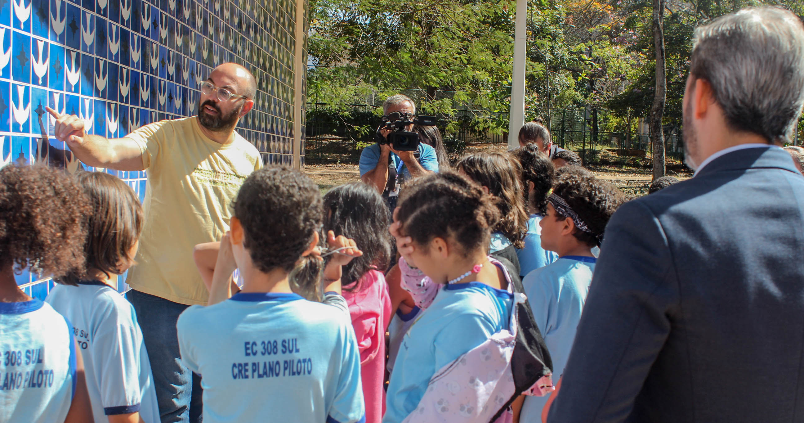 O vão livre de um prédio. Os azulejos e murais de uma igreja histórica. As ruas no entorno da escola. Tudo é - ou pode ser - sala de aula. Prova disso é a aula passeio conduzida pelo professor Cleber Cardoso Xavier. O tour é uma das ações do Projeto Preservarte Patrimônio, criado em 2010 e integrado ao calendário letivo da Escola Parque 308 Sul, em Brasília.
