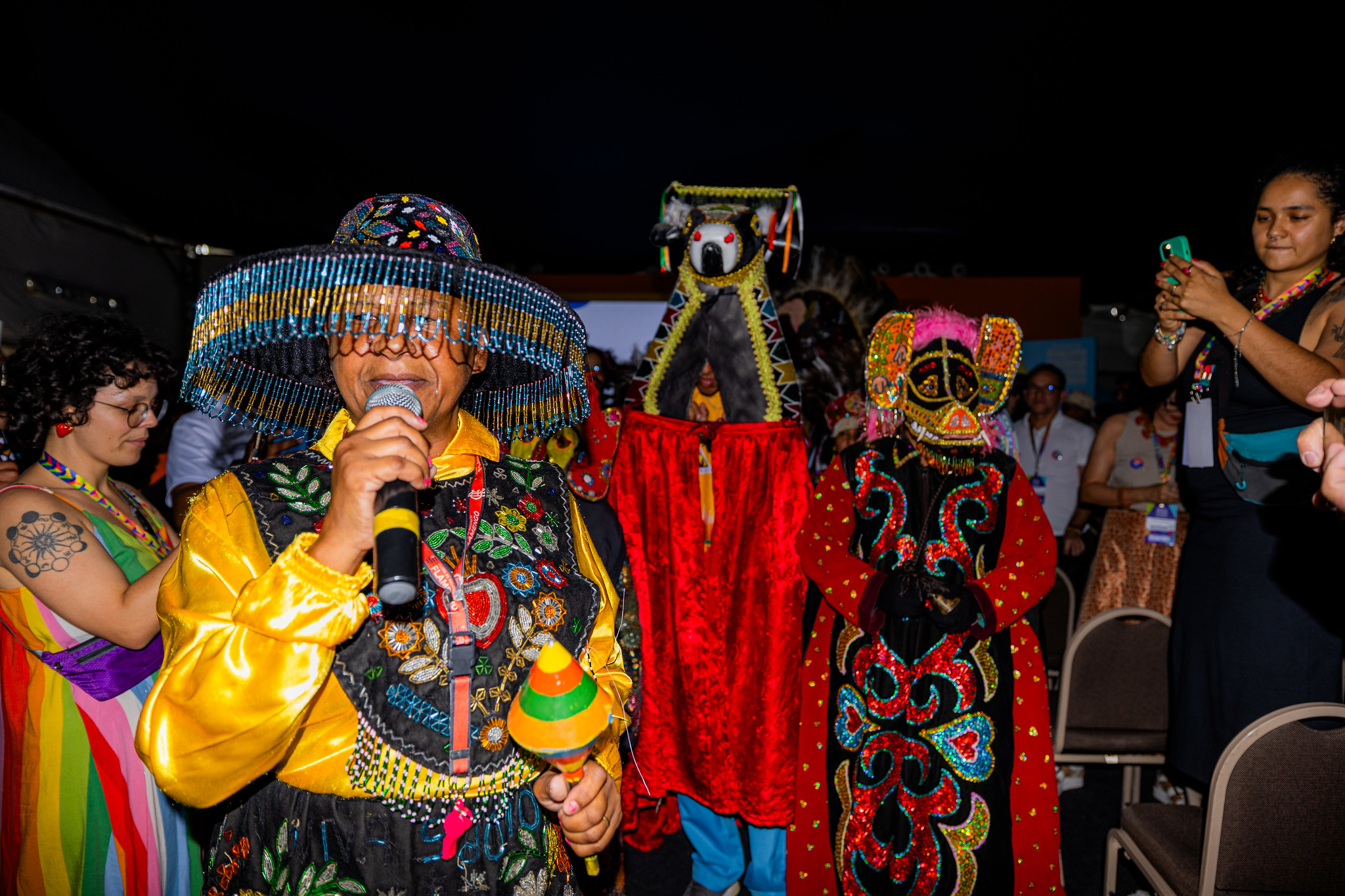 Agente territorial em atuação em Londrina (PR), Juuara dos Santos fez uma fala em nome da população minorizada e que tem ganhado protagonismo por meio do PNCC. “Aqui no Encontro Nacional, eu me faço presença, eu me faço o vento, que só pode ser, sem pedir licença. Eu brado justiça, como quem abre a estrada. Em brado existência, como quem move os muros. Sou aquilo que eles não esperavam, mas é inevitável. A luta é intransigente por acesso aos direitos”, declamou.