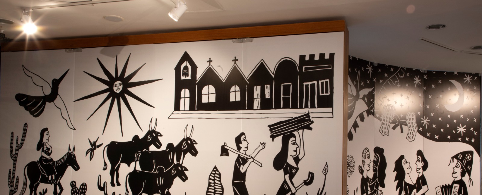 Uma das características mais marcantes da literatura de cordel, surgida no século 19, é ilustração com xilogravuras, que tem como base arte esculpida em madeira, como um carimbo. A musicalidade vem de rimas métricas.