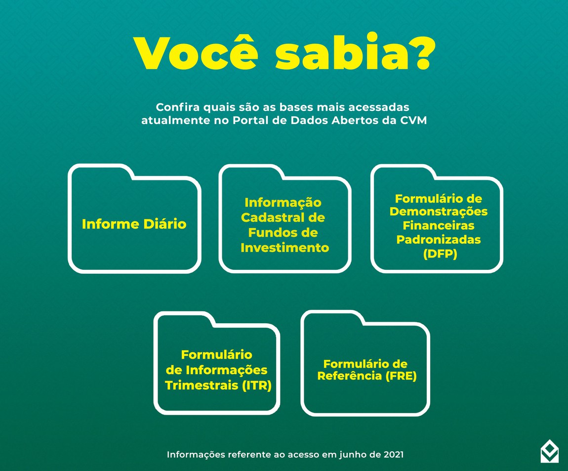 O Portal de Dados Abertos da Comissão de Valores Mobiliários (CVM) passou a incluir mais informações sobre as companhias abertas, reguladas pela Autarquia. Desde junho de 2021, estão disponíveis as informações sobre as Demonstrações de Resultado Abrangente do Formulário de Demonstrações Financeiras Padronizadas (DFP) e Demonstrações de Resultado Abrangente do Formulário de Informações Trimestrais (ITR).