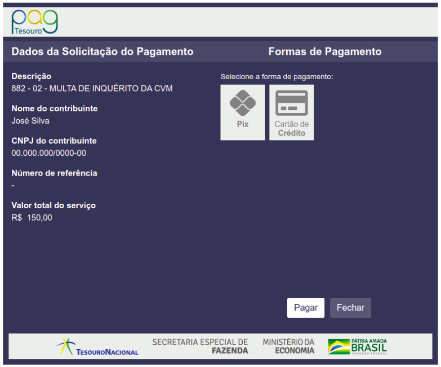 Trata-se de ferramenta de processamento de pagamentos digitais gerido pela Secretaria do Tesouro Nacional (STN). Nela, o pagamento pode ser feito por meio de Pix e cartão de crédito, além das Guias de Recolhimento da União (GRU). E o melhor: em poucos minutos, a CVM visualizará o recolhimento realizado. Tudo de forma prática, rápida e segura.