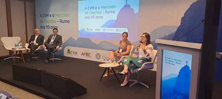O Presidente da CVM, João Pedro Nascimento, participou da abertura, juntamente com Fábio Coelho, Presidente da AMEC, e de Marcia Sadzevicius, Presidente da CFA Society Brazil