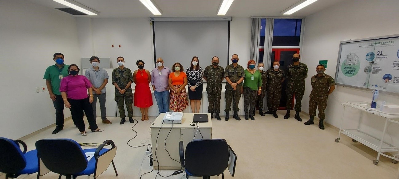 Brasília, 09/06/2021 - Nos dias 1 e 2 de junho de 2021, pesquisadores do Instituto Evandro Chagas (IEC), órgão subordinado à Secretaria de Vigilância em Saúde do Ministério da Saúde (SVS/MS), em Ananindeua, no Pará, receberam em suas instalações a Comitiva de Biossegurança do Ministério da Defesa. A Comitiva de Biossegurança do MD é constituída por representantes do Departamento de Ciência, Tecnologia & Inovação (DECTI) da Secretaria de Produtos de Defesa (SEPROD) e da Diretoria de Saúde e Assistência Social (DESAS).