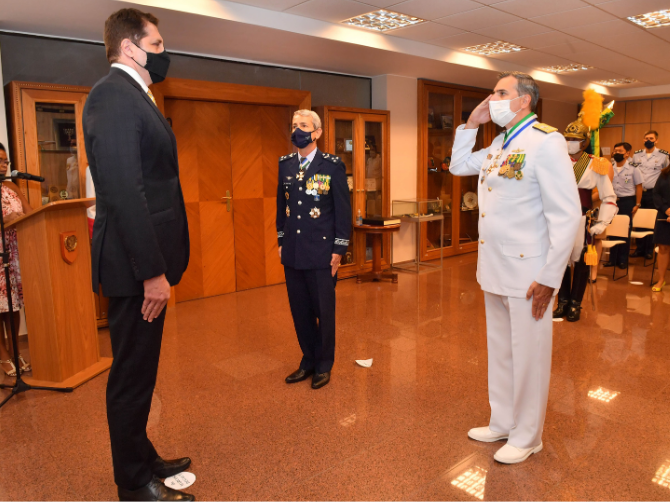 Por fim, o General de Brigada Flavio Mayon Ferreira Neiva passou o cargo de Diretor do Departamento de Financiamentos e Economia de Defesa (DEPFIN) ao Brigadeiro Antenor José Santos Margotto.