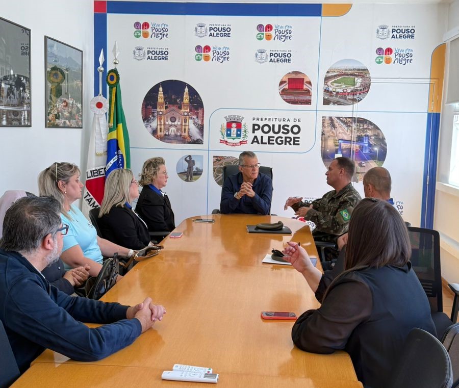 Além disso, a Coordenação Geral do PROFESP/PJP, do Departamento de Projetos Sociais, composta pelo Cel EB Sandro Gradici de Lira, Coordenador-Geral do PROFESP/PJP, pela 1ª Tenente Chailliny Rousy Cândido de Almeida, Assistente Técnica Militar, acompanhados do Coordenador do Núcleo do 14° GAC, e da Sra. Darlene Silva, Coordenadora Pedagógica, tiveram uma audiência com o Prefeito de Pouso Alegre, Coronel Dimas.