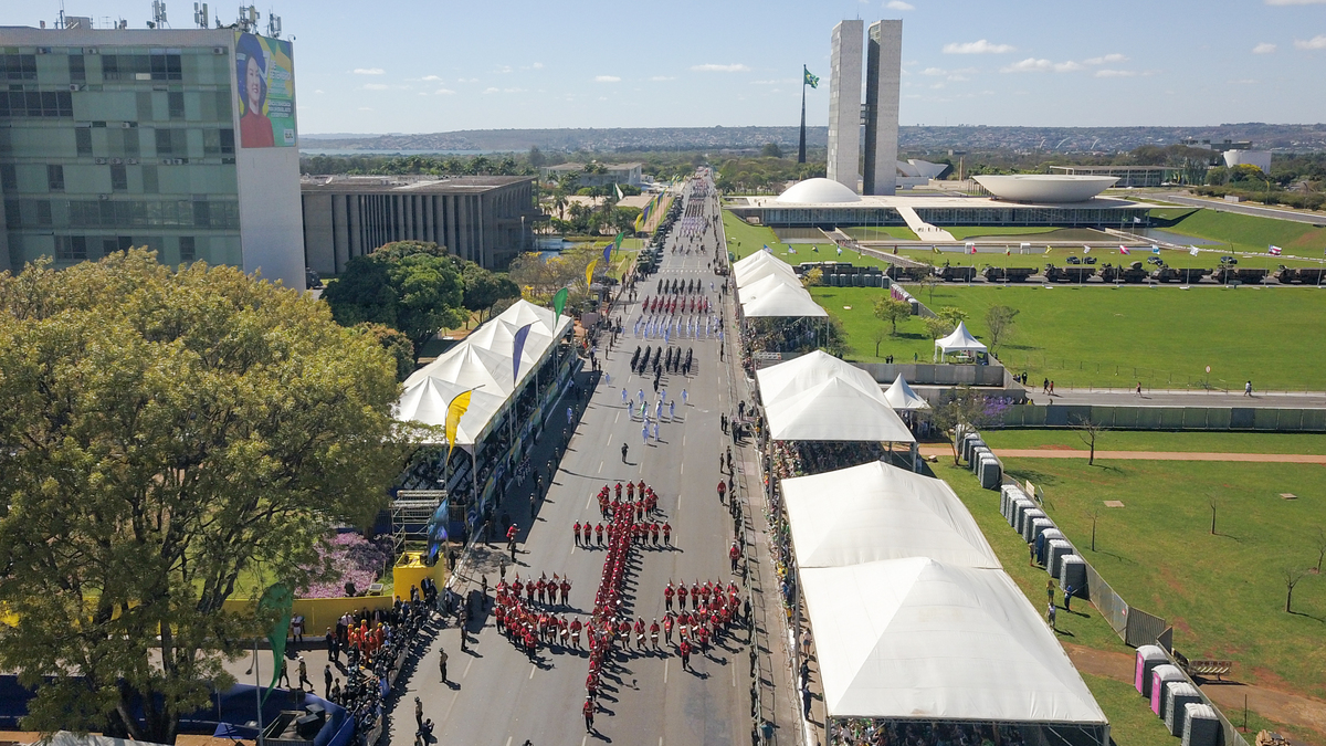 Desfiles no Brasil - Além da capital federal, tropas militares desfilam em 20 cidades no país. Também há previsão de desfile de aeronaves em 7 municípios: Recife (PE), Rio de Janeiro (RJ), São Paulo (SP), Campo Grande (MS), Porto Alegre (RS), Manaus (AM) e Boa Vista (RR). Ainda, a programação conta com desfile naval nas cidades de Brasília (DF), Vitória (ES), Manaus (AM) e Corumbá (MS).