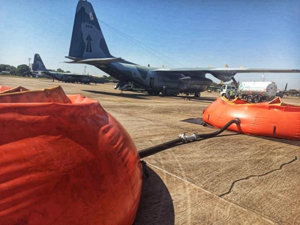 Brasília (DF), 03/08/2020 - O Ministério da Defesa, por meio dos militares das Forças Armadas, prosseguiu, no fim de semana, o combate aos focos de incêndio no Pantanal, em Mato Grosso do Sul. O C-130 Hércules, da FAB, realizou, no domingo (02), quatro saídas. A aeronave está deslocada na Ala 5 - Base Aérea de Campo Grande e utiliza o sistema de combate a incêndio MAFFS (do inglês, Modular Airborne Fire Fighting System). O equipamento conta com dois tubos que projetam água pela porta traseira do avião, a uma altura aproximada de 150 pés, cerca de 46 metros.