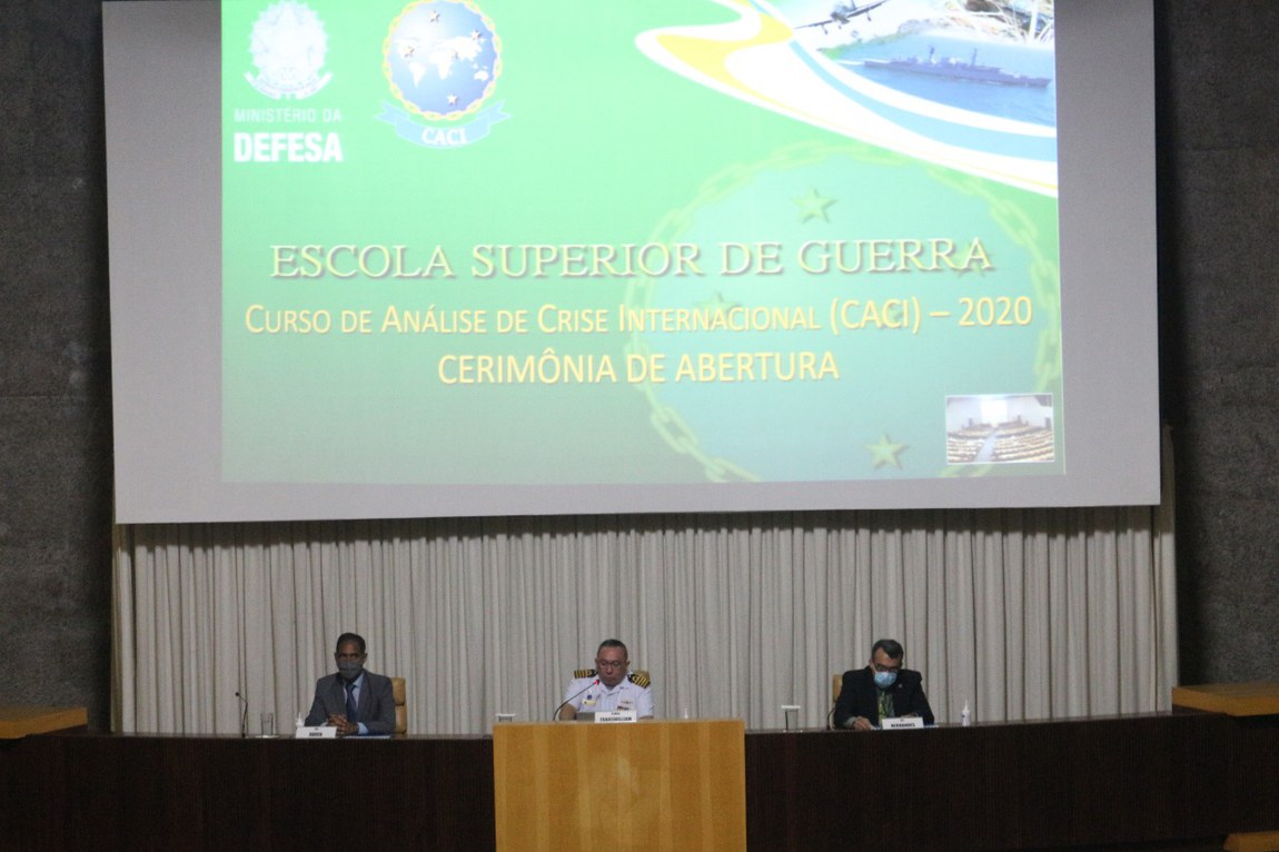 Brasília (DF), 22/09/2020 – A 2ª edição do Curso de Análise de Crises Internacionais (CACI) inicia no Campus Brasília da Escola Superior de Guerra (ESG). O propósito do curso é desenvolver habilidades interpretativas para a compreensão da realidade política internacional contemporânea. Por meio de estudo teórico e conceitual, civis e militares se preparam para análise de crises internacionais.