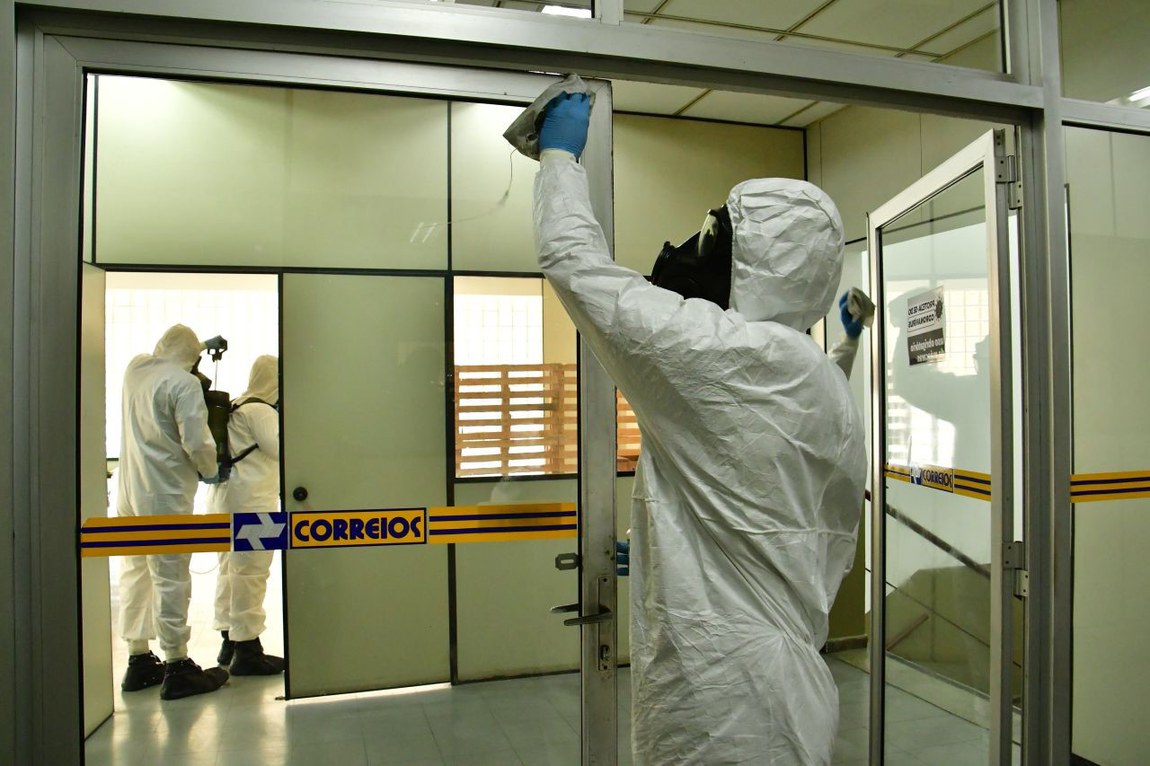 Já o Comando Conjunto Leste realizou ação de desinfecção do Centro de Tratamento de Encomendas dos Correios, em Benfica, no município do Rio de Janeiro. Nesse local, trafegam mais da metade do fluxo postal do estado do Rio de Janeiro.
