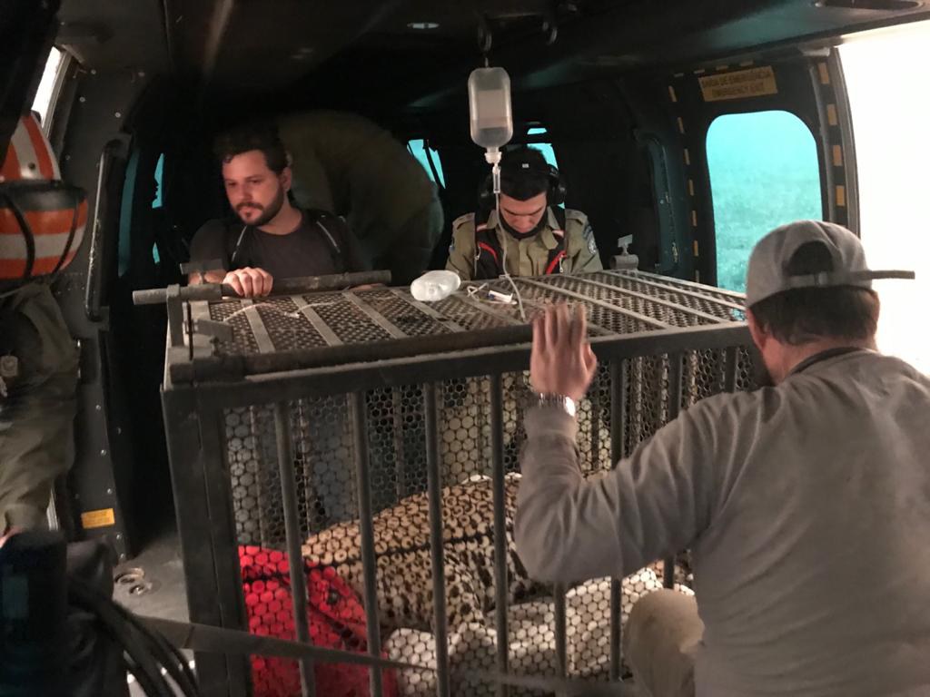 Nessa sexta-feira (11), foi resgatado um filhote de onça-pintada com as patas queimadas, no Pantanal mato-grossense, com apoio de helicóptero Super Cougar (UH-15), da Marinha. A aeronave, empregada na Operação Pantanal desde o seu início, em 25 de julho, para o transporte de pessoal e material, foi acionada para transportar o animal da região de Porto Jofre para o Hospital Veterinário da Universidade Federal de Mato Grosso.