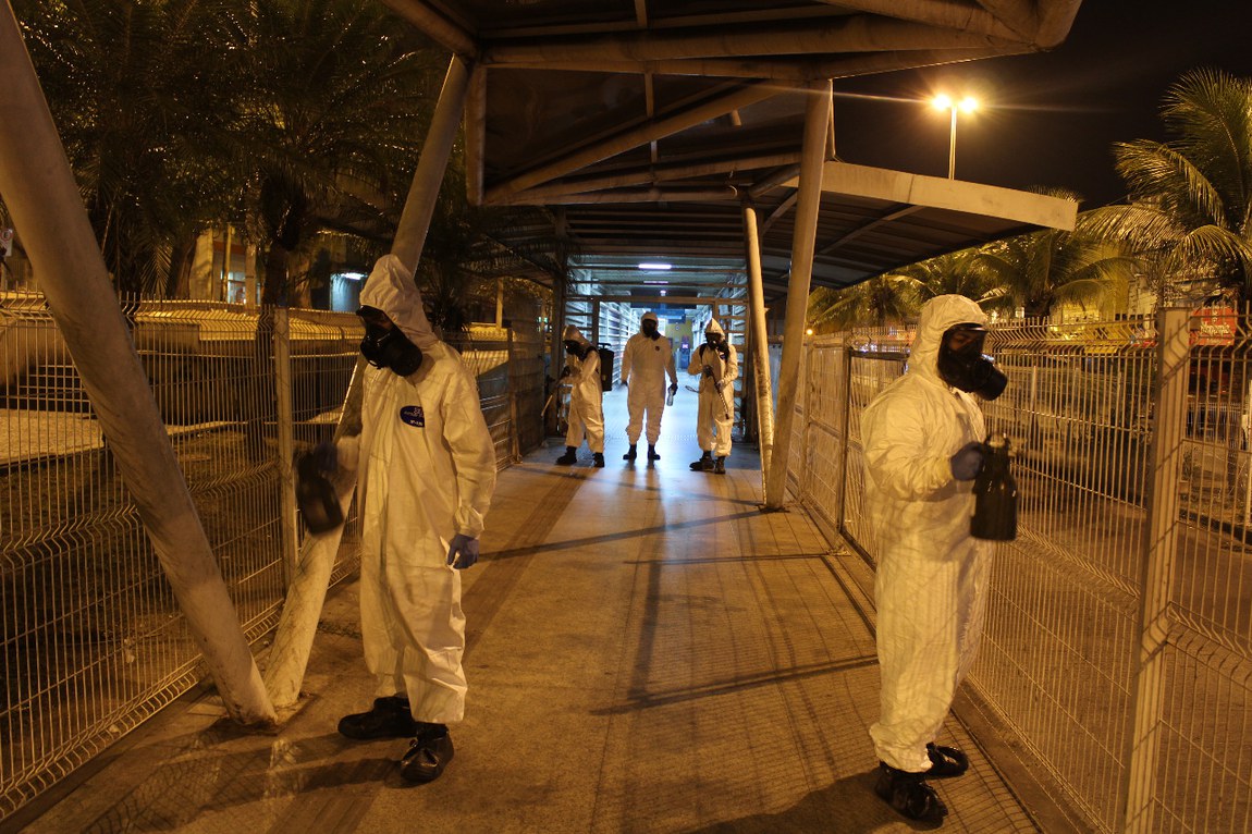 Militares do Comando Conjunto Leste (CCj L), em parceria com o consórcio BRT, desinfectaram a Estação Taquara, o corredor Transcarioca e o Terminal Santa Cruz, o corredor Transoeste. Em outra região do País, profissionais do Comando Conjunto Oeste (CCj Oeste) descontaminaram três escolas municipais de Corumbá, em Mato Grosso do Sul. Foram elas: Fernando de Barros, Prof. Djalma de Sampaio Brasil e Barão do Rio Branco. A ação foi realizada pelo Grupamento Operativo de Defesa Nuclear, Biológica, Química e Radiológica (GptOpDefNBQR), composto por militares do Comando do 6º Distrito Naval (Com6ºDN).