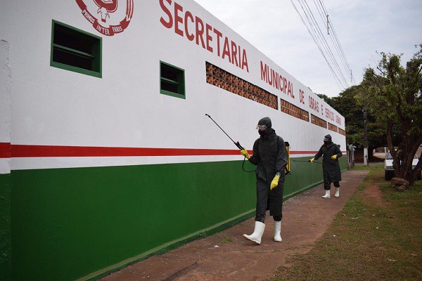 Outra atividade realizada por integrantes da Forças Singulares foi a desinfecção de áreas externas, internas e do pátio da Secretaria de Obras e Serviços Urbanos, em Nioaque (MS). O trabalho foi executado no âmbito do Comando Conjunto do Oeste, por meio do 9º Grupo de Artilharia de Campanha, dando continuidade a ações de controle e combate à Covid-19.