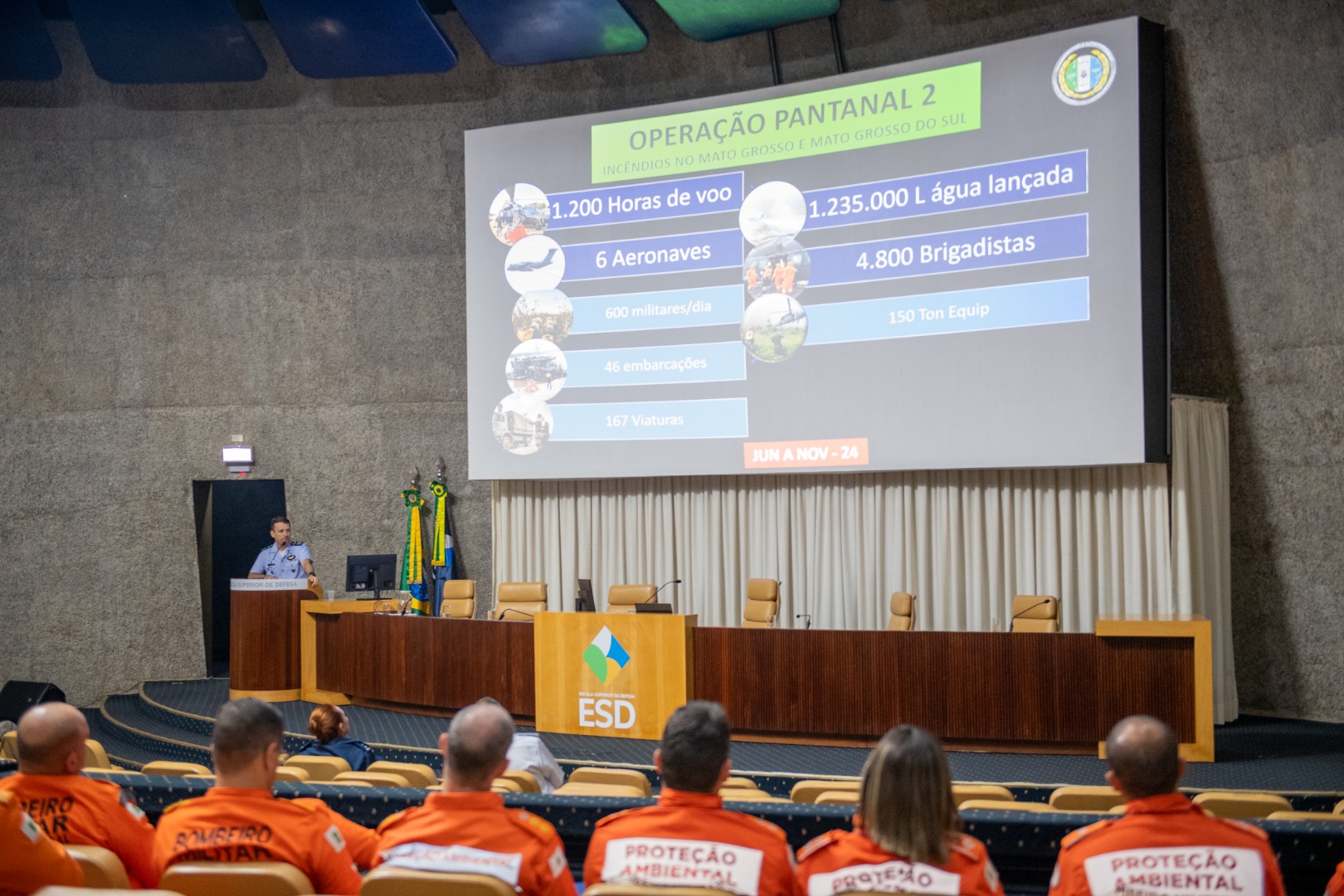 Brasília (DF), 19/11/2025 - O Ministério da Defesa (MD) reuniu especialistas nacionais e internacionais para discutir soluções inovadoras no combate a incêndios florestais. Nos dias 18 e 19, a Escola Superior de Defesa (ESD) sediou o 1º Simpósio Internacional de Combate a Incêndios Florestais com Emprego Aeroespacial (Aerofire), que trouxe sete painéis sobre prevenção, monitoramento e enfrentamento do fogo em todos os biomas brasileiros.