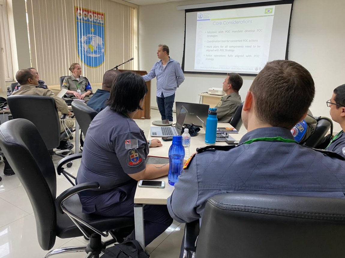 Em seguida, o Major Muhammad Shahjada Omar Habib avaliou o Estágio de Proteção de Civis (Comprehensive Protection of Civilians Course/CPoC), no CCOPAB. No período de dez dias, 54 participantes das Forças Armadas brasileiras, Polícias Militares e militares estrangeiros de seis países receberam instruções teóricas e práticas, realizadas integralmente no idioma inglês. O Objetivo do curso é preparar os oficiais para exercer funções relacionadas à sistemática de proteção de civis nas operações de manutenção da paz.