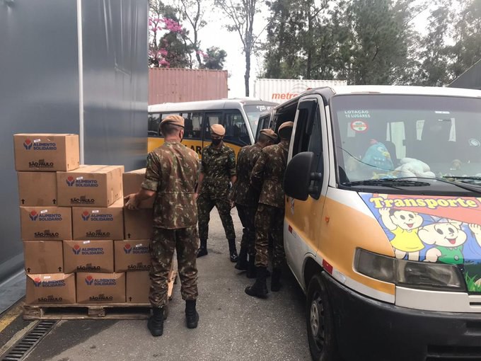Em continuidade às doações de cestas básicas, militares do 4°Batalhão de Infantaria Leve, distribuíram kits de alimentação para famílias de baixa renda no município paulista de Osasco. Já o 2º Batalhão de Polícia do Exército transferiu cerca de 3 mil kits de alimentação para o município de Diadema, no mesmo Estado.