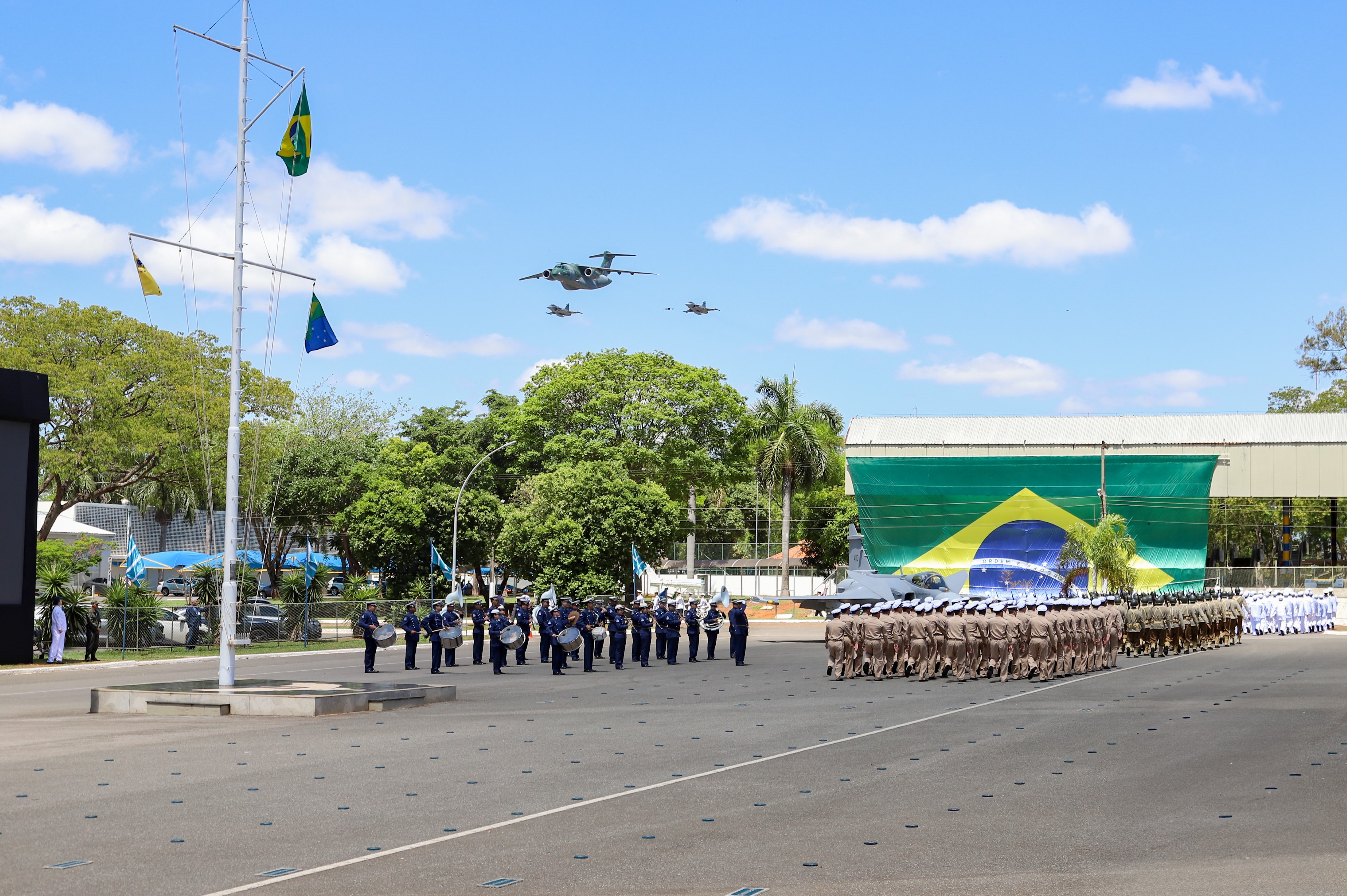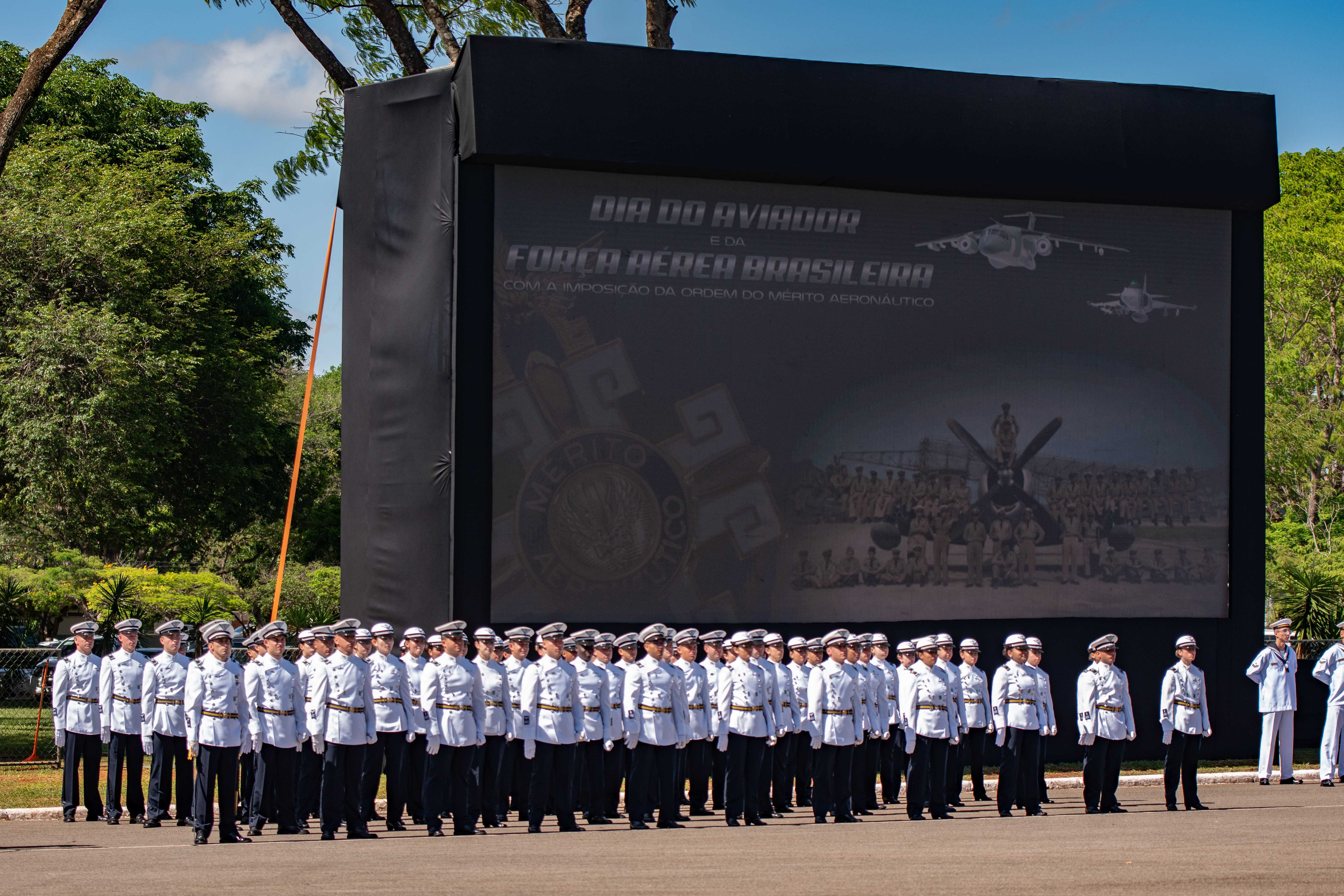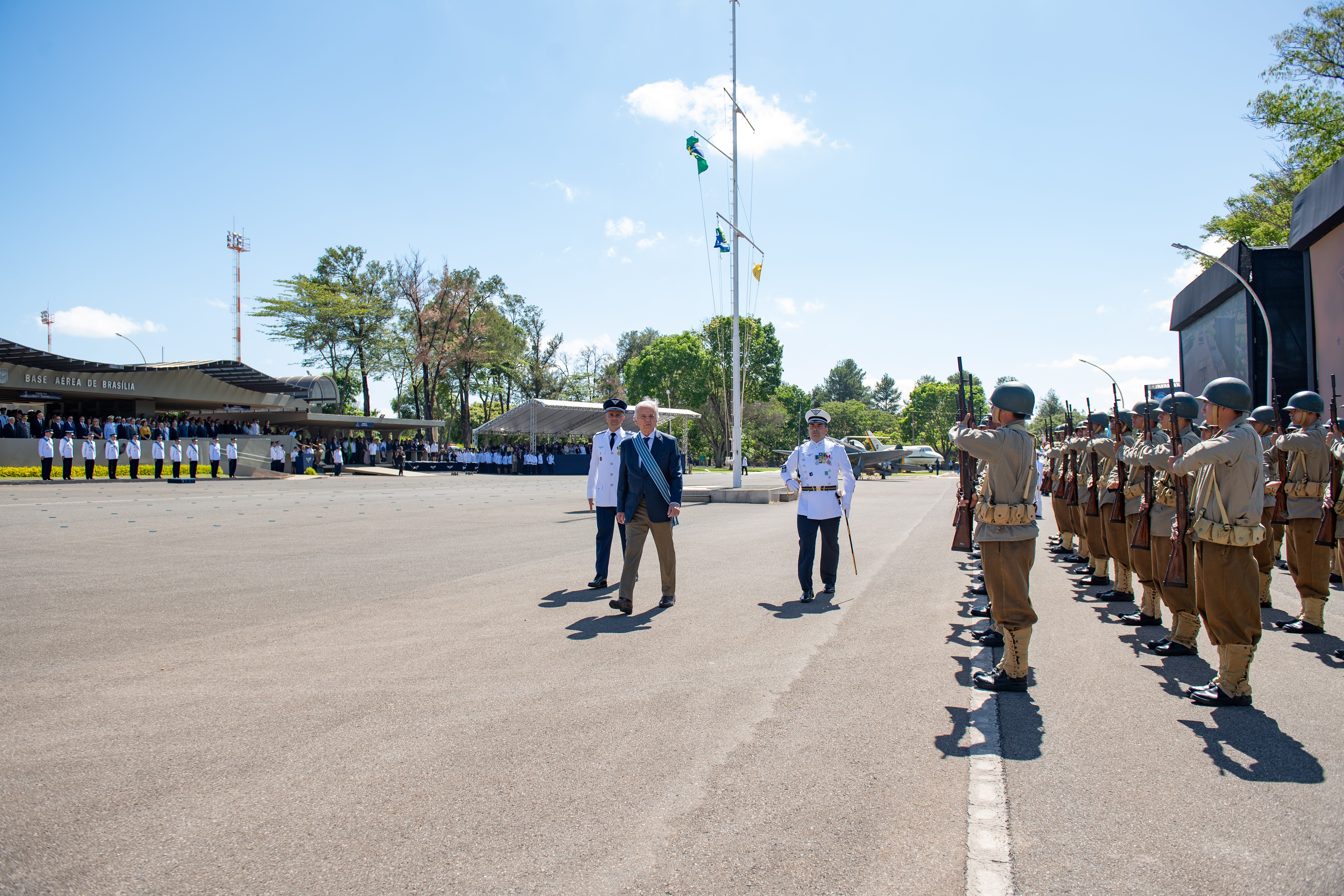 Brasília (DF), 23/10/2025 - O Ministro da Defesa, José Mucio Monteiro, presidiu, nesta quinta-feira (23), a cerimônia militar alusiva ao Dia do Aviador e ao Dia da Força Aérea Brasileira (FAB), realizada na Base Aérea de Brasília, no Distrito Federal. O evento celebrou o legado de Alberto Santos-Dumont, patrono da aviação, e reconheceu a dedicação de militares e civis que contribuíram para a manutenção da soberania do espaço aéreo nacional.