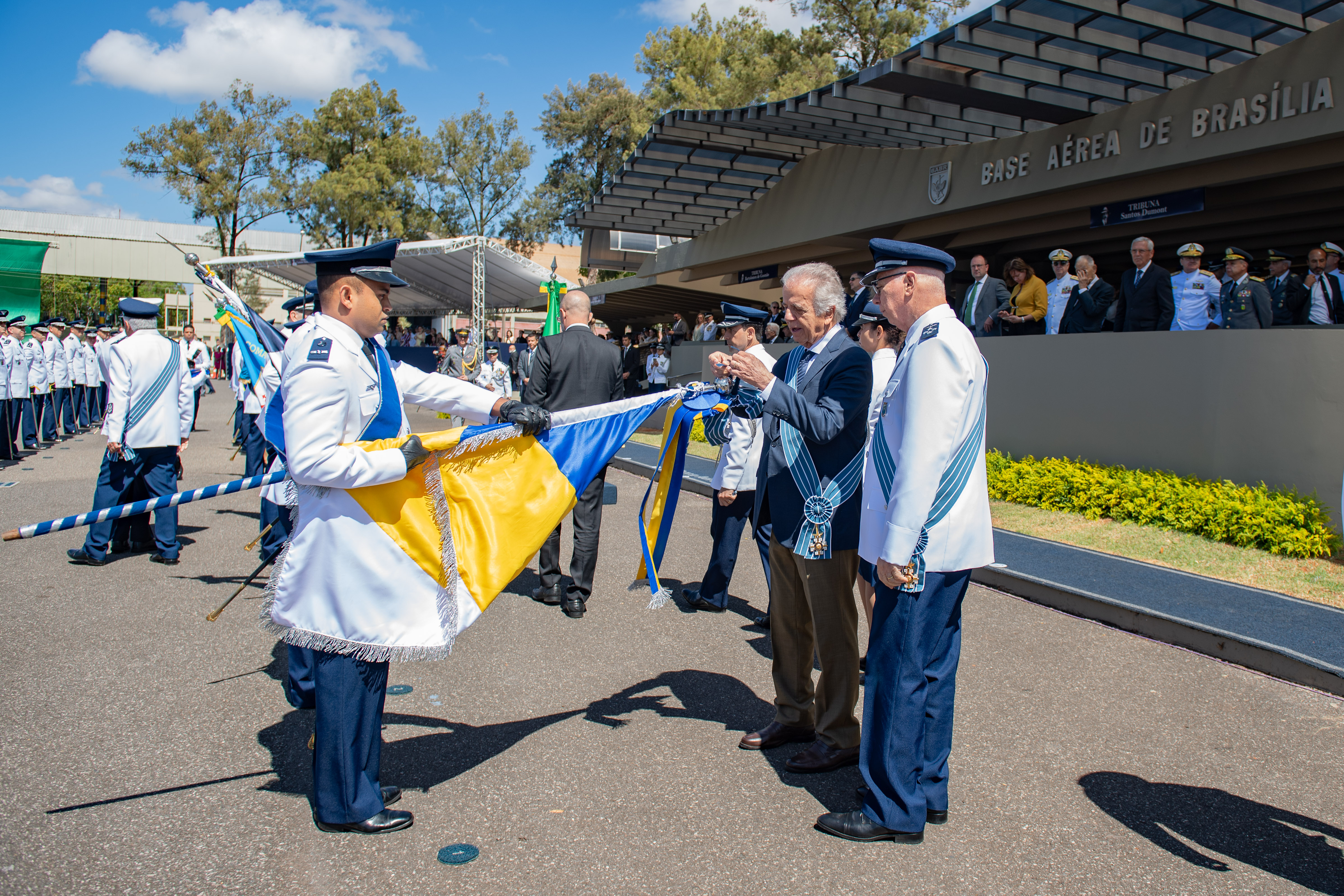Durante a solenidade, o Ministro passou em revista à tropa e, ao lado do Comandante da Aeronáutica, Tenente-Brigadeiro do Ar Marcelo Kanitz Damasceno, participou da imposição das condecorações aos estandartes das organizações agraciadas com a Ordem do Mérito Aeronáutico (OMA), honraria concedida pela Força.