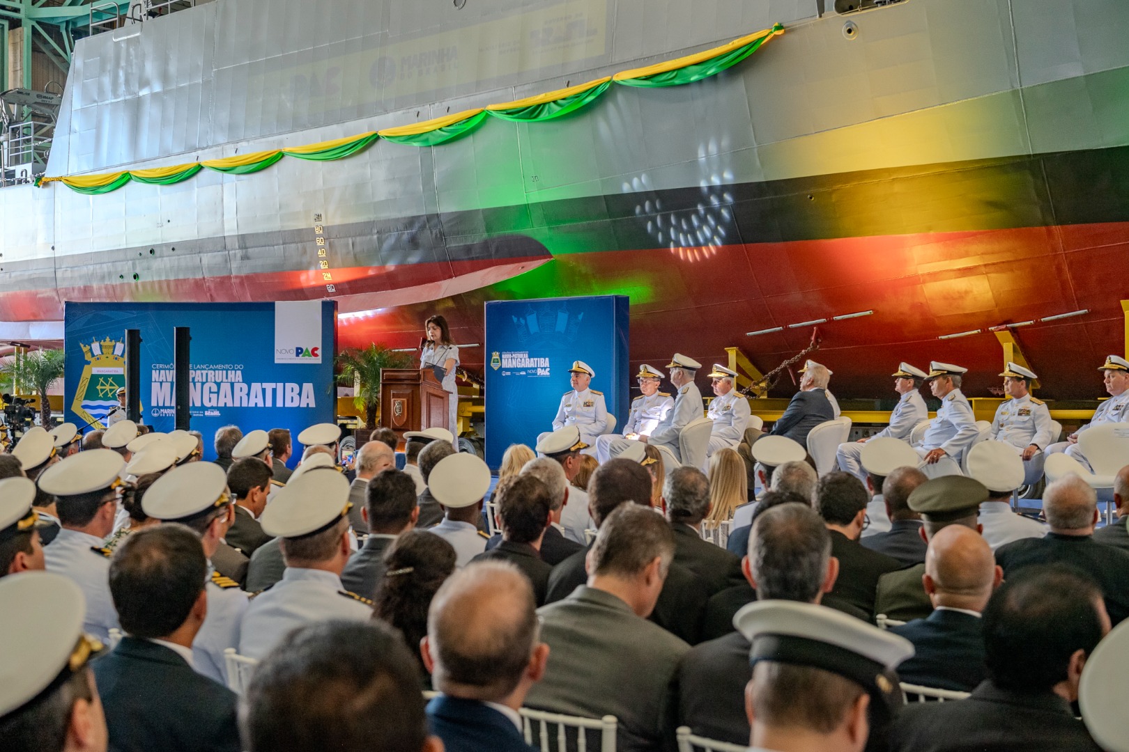 Cumprindo a tradição naval de batismo, a Secretária-Geral do Ministério da Defesa, Cinara Wagner Fredo, convidada para ser madrinha da embarcação, batizou o Navio-Patrulha “Mangaratiba”, e na ocasião, destacou o simbolismo do momento. “Como servidora pública do Ministério da Defesa fiquei muito honrada e grata pelo convite. O Mangaratiba, além de tudo, simboliza o fortalecimento da nossa Base Industrial de Defesa, seja na geração de empregos, seja na questão técnica, e mostra que estamos preparados para produzir navios patrulha dessa qualidade”, afirmou.