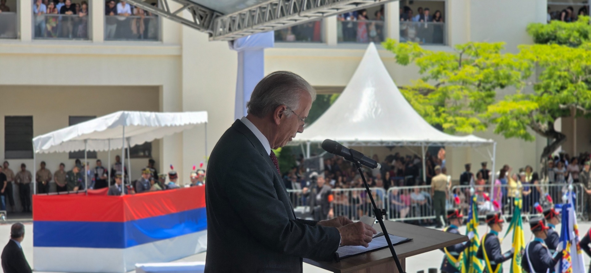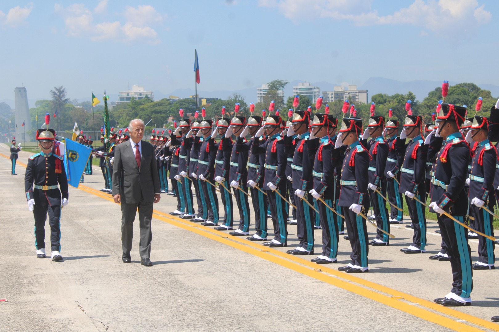 Ao final, José Mucio reconheceu a liderança do Comandante do Exército, General de Exército Tomás Miguel Miné Ribeiro Paiva e o papel da Força Terrestre para o Brasil. “Meus cumprimentos ao General Tomás, por sua liderança e pela segura direção desta instituição tão admirada, fundamental para a soberania, a defesa das fronteiras e o apoio ao povo brasileiro.”