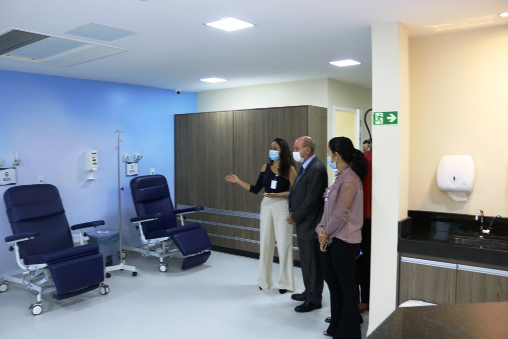 Já a nova Clínica de Oncologia tem 202 metros quadrados, ganhou nova sala de espera, o número de consultórios e de poltronas no salão de quimioterapia também foram ampliados. A partir de agora, a clínica contará com um quarto para procedimentos individuais, três consultórios e sete poltronas que acomodarão os pacientes durante a aplicação de quimioterápicos.