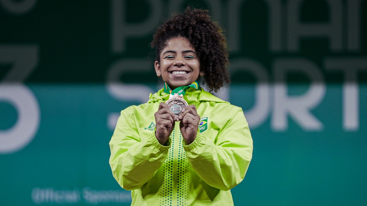 - 23.10.2023 - Jogos Pan-americanos Santiago 2023 - Levantamento de Pesos - 81kg - Na foto, Laura Amaro, medalhista de bronze - Fotógrafa: Marina Ziehe/COB