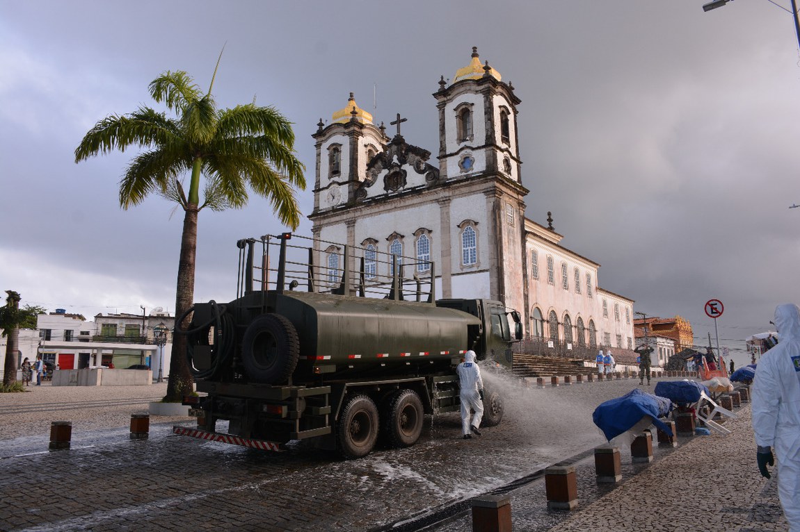 Pontos turísticos em Salvador são descontaminados por militares das Forças Armadas