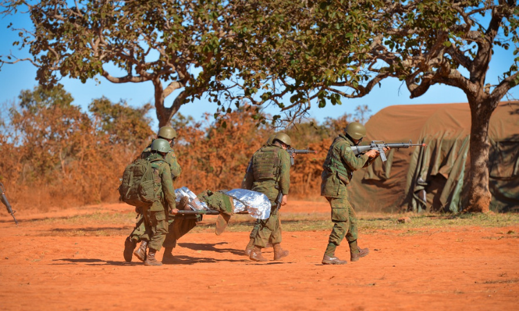 Resgate de militar ferido em uma situação de conflito