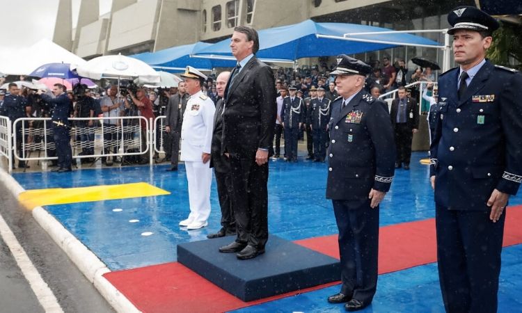 Pirassununga (SP), 06/12/2019 - Após quatro anos de intensos estudos, 139 cadetes (116 homens e 23 mulheres) se formaram Aspirantes na Academia da Força Aérea Brasileira (AFA), em Pirassununga (SP). Os militares da Turma Asterion desfilaram embaixo de chuva para centenas de familiares e em homenagem ao Presidente da República, Jair Bolsonaro, que estava acompanhado do Ministro da Defesa, Fernando Azevedo, e dos Comandantes da Marinha, Almirante de Esquadra Ilques, e da Aeronáutica, Tenente Brigadeiro do Ar Bermudez.