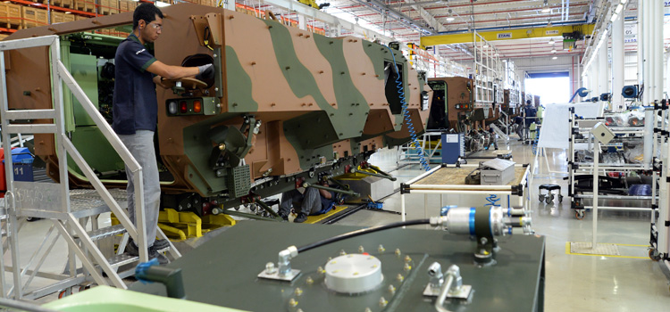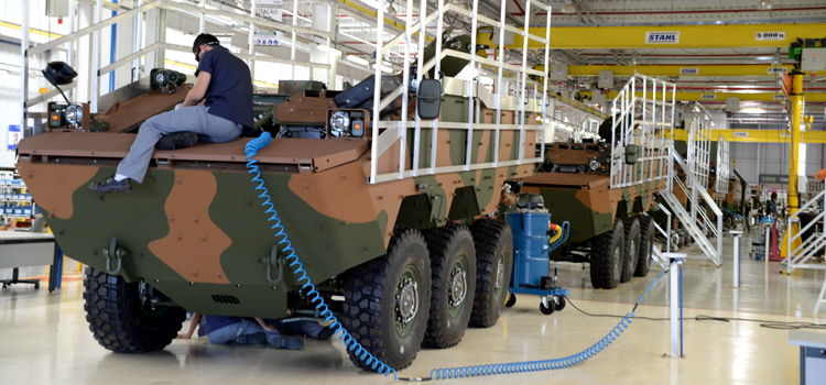Cada unidade do Guarani leva até 3,2 mil horas para ser fabricada. São 350 funcionários na linha de montagem, inaugurada em 2013 especificamente para o projeto e que tem capacidade de produzir entre 120 e 200 blindados ao ano.