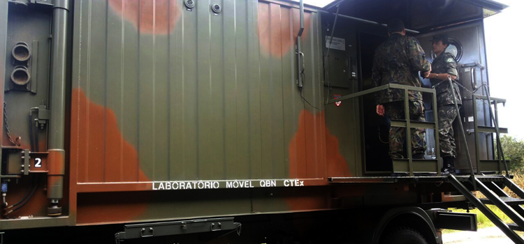 Um dos equipamentos à disposição foi o leitor de agentes químicos sólidos e líquidos por refração a laser. Os dados podem ser repassados instantaneamente, via celular, para o Sistema de Vigilância de Defesa QBRN.