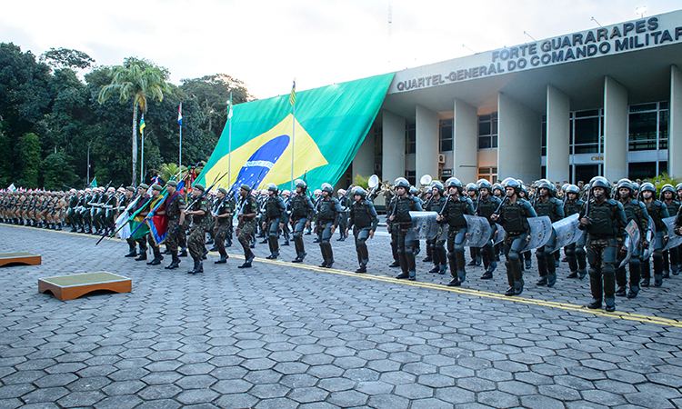O encerramento da cerimônia ocorreu com o desfile da tropa cantando o "Hino à Guararapes", a canção "Fibra de Heróis" e ao som dos dobrados "Barão do Rio Branco" e "Saudades da Minha Terra".