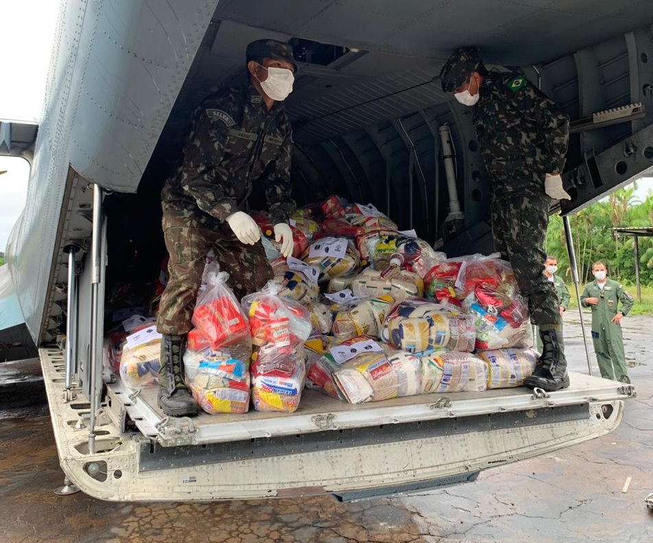 Uma desses apoios ocorre com a distribuição de alimentação para comunidades indígenas. Até o momento, mais de 3 mil cestas básicas foram distribuídas. Só no Pará, por meio da Operação Trincheira, que integra a Operação COVID-19, cerca de 2,6 mil cestas foram levadas até aldeias de diversas etnias. O Comando Conjunto Amazônia também apoiou comunidades próximas ao município de São Gabriel da Cachoeira, no Amazonas, com a entrega de kits de alimentação.