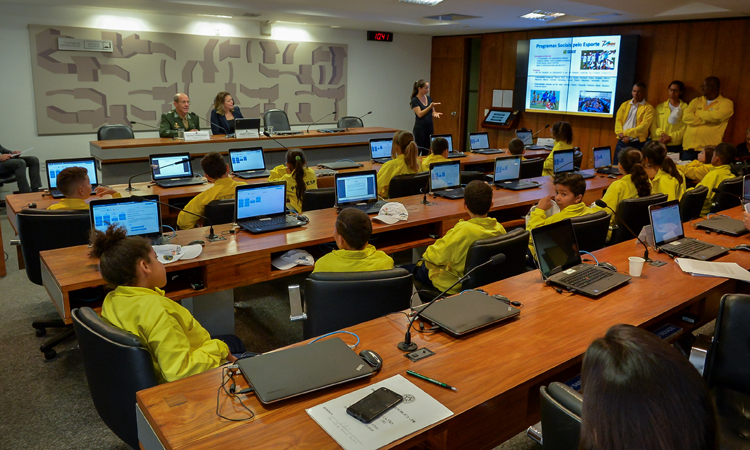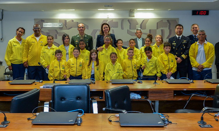 Um grupo de crianças e adolescentes que realizam atividades do PROFESP, no Grupamento de Fuzileiros Navais, em Brasília, acompanhou a apresentação do Programa no Senado Federal.