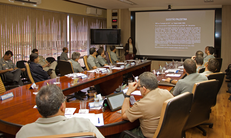 Durante a reunião, há o compartilhamento de conhecimentos referentes à estrutura da ONU, no que é pertinente às Operações de Paz, aos aspectos históricos do Líbano, aos aspectos jurídicos da missão e à atuação da SC-4 e de outros setores do ministério em apoio ao CONTBRAS-Líbano.