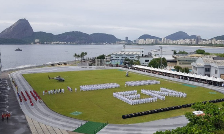 - O dia chuvoso, de céu encoberto e trânsito difícil, do sábado (8), não tirou a beleza do cenário da baia de Guanabara, ornamentada pelos navios da Marinha que emolduravam a pequena orla da Ilha de Villegagnon. Ali, fica a sede da Escola Naval, instituição de ensino superior mais antiga do país.