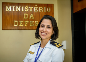 Hoje, assessora jurídica no Centro de Comunicação Social da Marinha, ela é uma das estagiárias do curso de Direito Internacional dos Conflitos Armados, da Escola Superior de Guerra, núcleo Brasília.