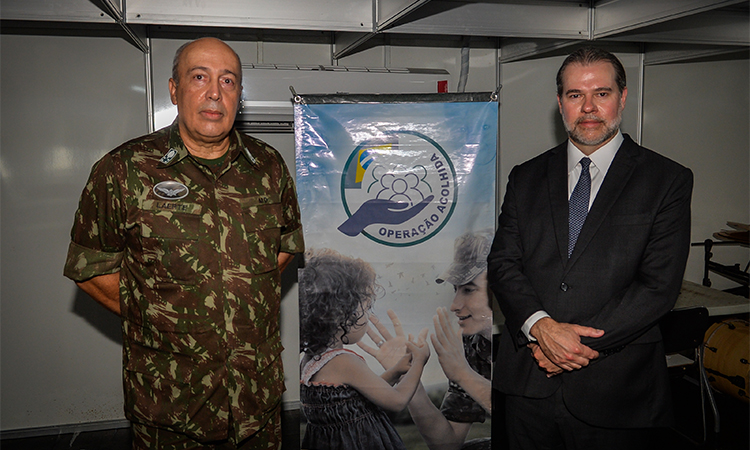 O Presidente do Supremo Tribunal Federal (STF), Dias Toffoli, visitou, na terça-feira (23), as estruturas da Operação Acolhida nas cidades de Boa Vista e Pacaraima, em Roraima. No início da manhã, o ministro do STF foi recebido com honras militares na Primeira Brigada de Infantaria de Selva, na capital do estado. Em seguida, ele passou em revista à guarda, presenciou desfile da tropa de militares dessa organização militar e acompanhou uma apresentação do coordenador da Operação Acolhida, General de Divisão Eduardo Pazuello, sobre a Força Tarefa Logística Humanitária em Roraima.