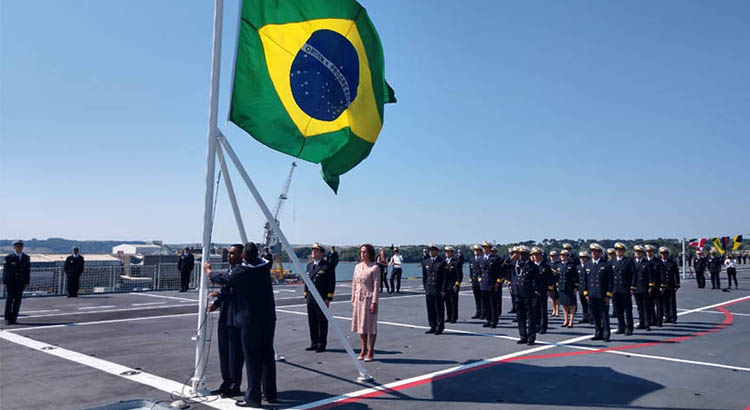 Na ocasião, foi realizada também a assunção do comando do navio pelo capitão de Mar e Guerra Giovani Corrêa e a senhora Patrícia Monteiro da Costa, madrinha do navio, conduziu, a bordo, o primeiro cerimonial à Bandeira do Brasil.