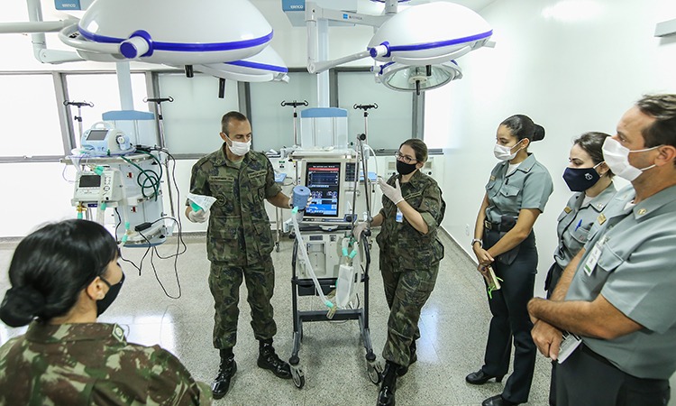 Brasília (DF), 05/05/2020 - Capacitação específica no combate ao coronavírus é indispensável para os profissionais de saúde que atendem pacientes acometidos pela Covid-19. Nesta terça-feira (05), unidades de saúde das Forças Armadas deram início a treinamento voltado para emergências clínicas e cuidados intensivos para médicos, enfermeiros, fisioterapeutas e técnicos de enfermagem.
