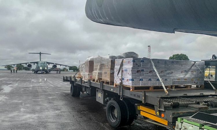 Outra aeronave da FAB decolou de Guarulhos, em São Paulo, também com destino a Manaus, transportando 175 cilindros de oxigênio, seis respiradores hospitalares e 400kg de medicamentos. Essas missões são coordenadas pelo Centro de Coordenação de Logística e Mobilização (CCLM), do Ministério da Defesa, em parceria com o Ministério da Saúde e Governo do Estado do Amazonas, sendo executada pelo Comando Aeroespacial (COMAE), da FAB.
